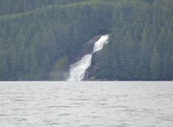 With South East winds gusting from 30 to 35 knots the work channel is the alternate place to fish and the 48 k of travel up the fjord is just spectacular to see. On the right going up there is another 8km channel called Quottoon Inlet and at the center of this inlet is Quottoon Narrows. This is where beautiful rapids are present on the flood tide and as well as on the ebb. To top it off at the end of this beautiful inlet is Thulme falls coming from the Thulme River.