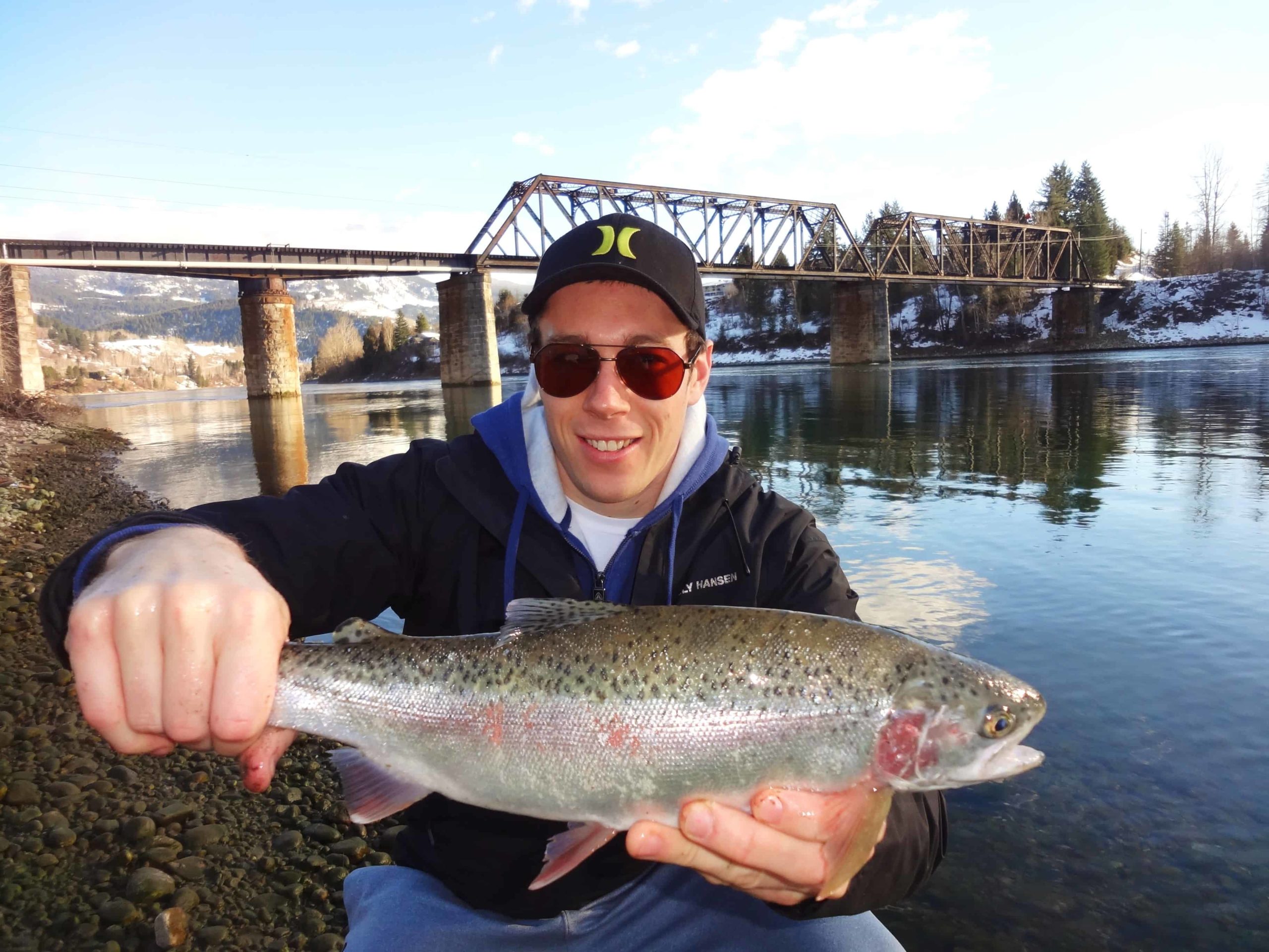 Even though the Columbia River is vast in size you don’t have to travel far from Castlegar to find the hotspots! In fact, one of the best spots for winter Rainbow Trout fishing is located within the city limits of Castlegar. Located downstream of the mouth of Pass Creek, between the Robson bridge and the old CPR bridge you can definitely get yourself into some good fishing action! This area of the river is best fished pre-spawn in the winter months of January and February. (When fishing this area you need to be aware of the in-season regulation changes as this part of the river does have closures. Barbless hooks ONLY on the Columbia River. Always check the Fresh Water Fishing Regulations before going out.)